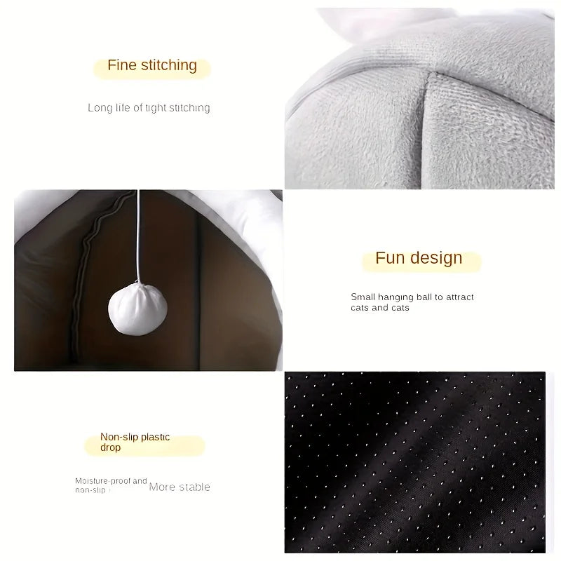 1 Comfortable Cartoon Cat House with Removable Pad, Modern Style Pet Bed Cave, Indoor Plush House Bed with Pompom