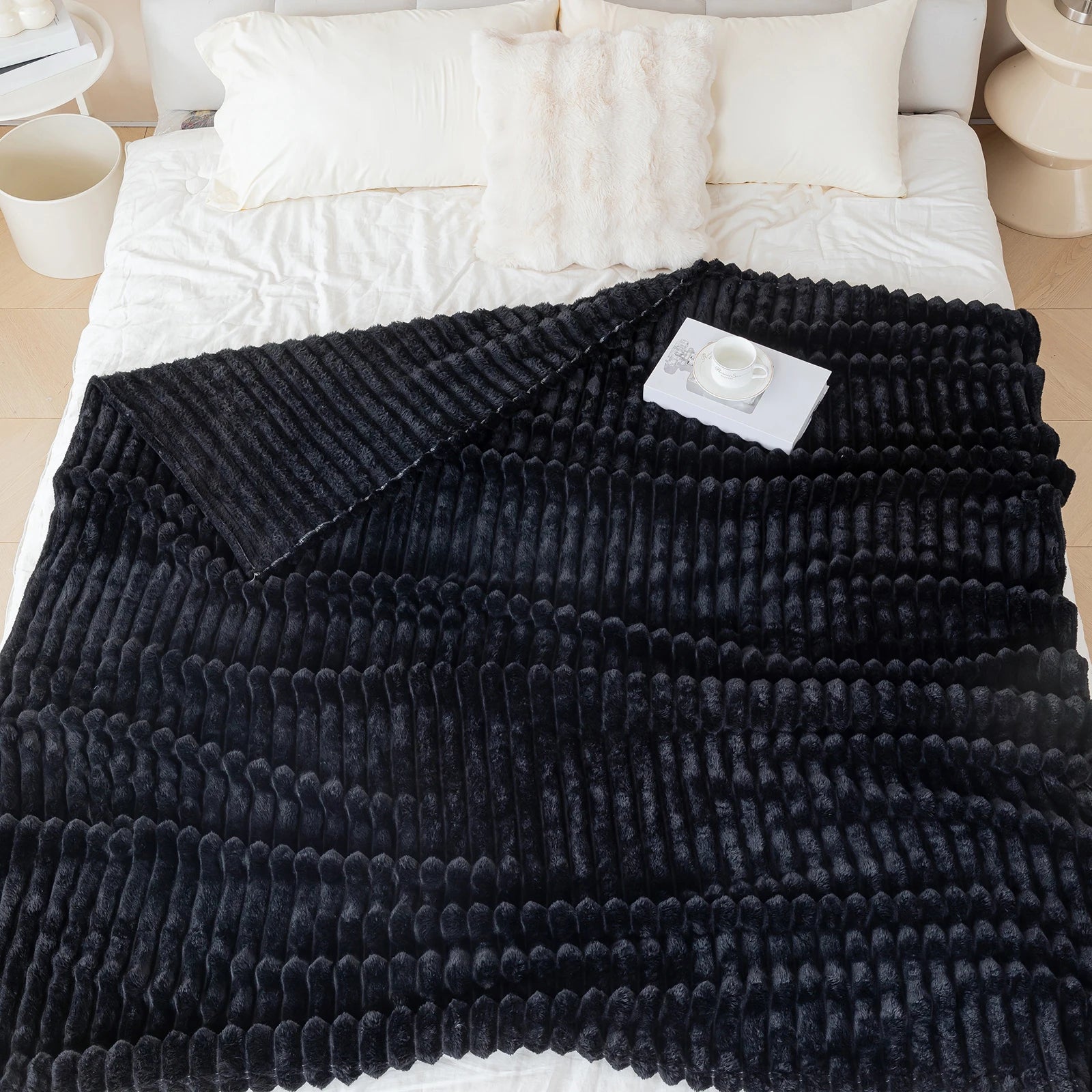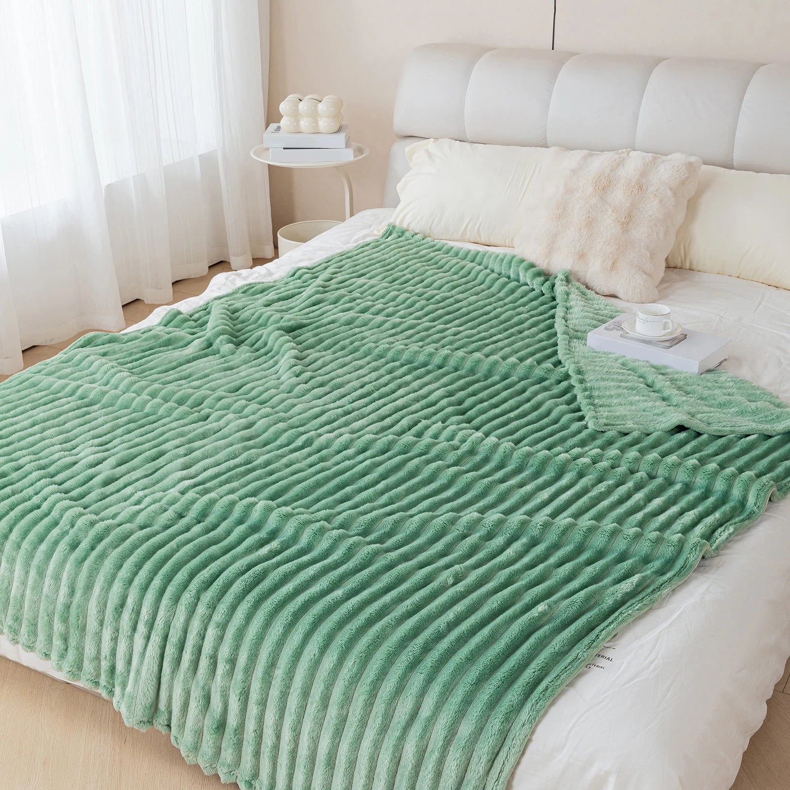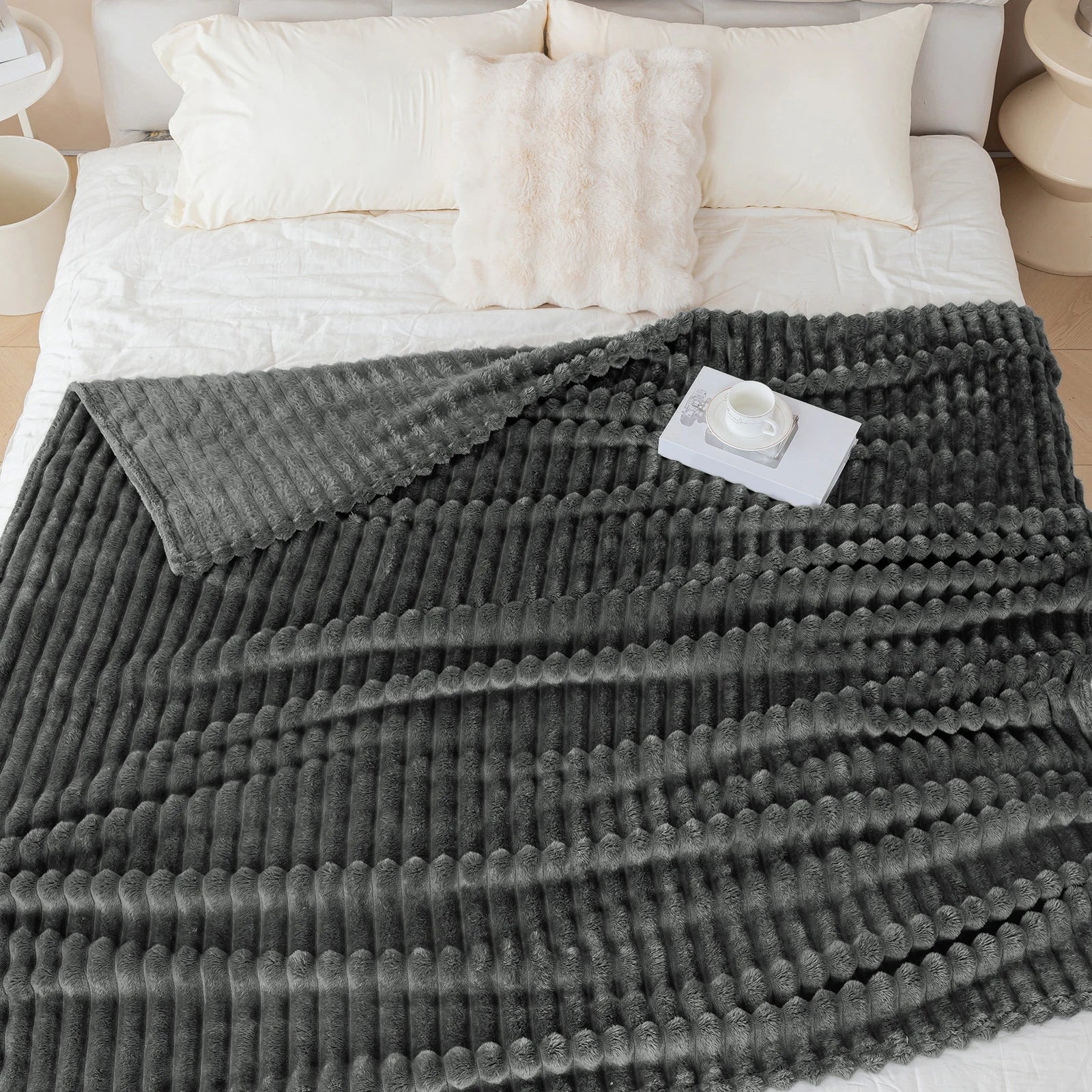 1pc solid color thick wide stripe multifunctional blanket, can be used as bed sheet covering blanket, nap blanket, pet blanket