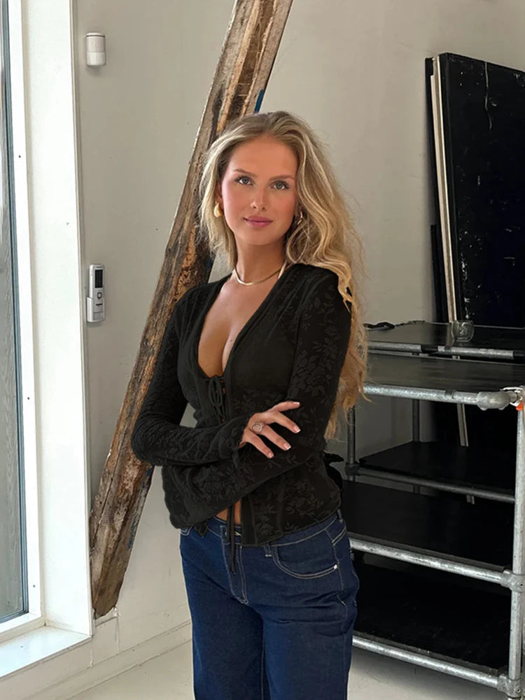 Autumn New Fashionable Chiffon Slim Fit Ruffle Trumpet Sleeve Shirt for Women