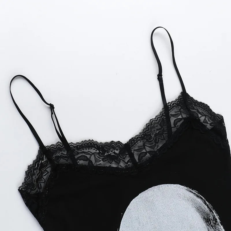 Goth Dark Streetwear Anime Skull Print Straps Mini Dress Fairy Lace Stitch Club Outfits Slim Sexy Bodycon Dresses Mall Gothic