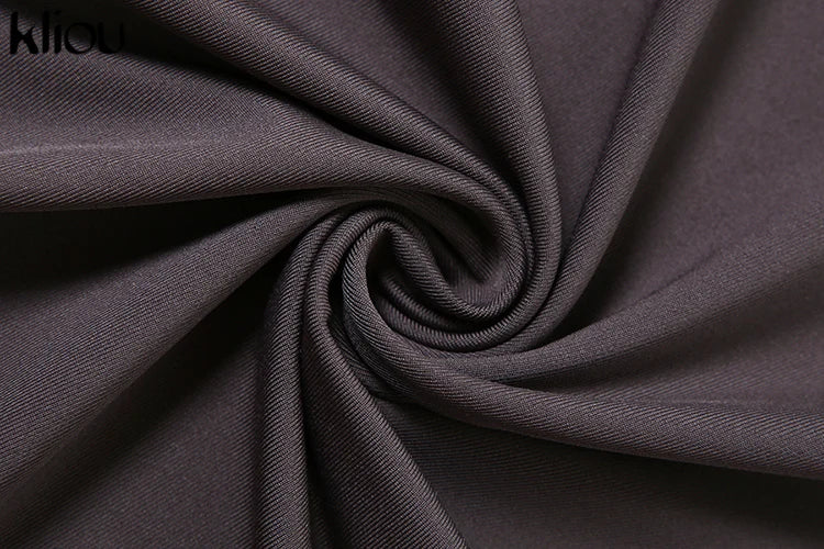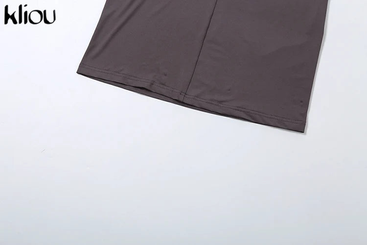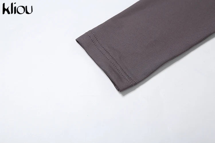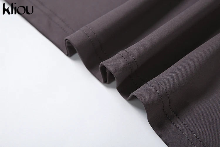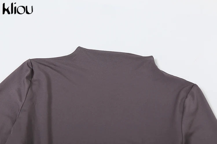 kliou Shirring Women Classic Maxi Dress Autumn New Solid Long Sleeve High Collar Body-shaping Vestidos Mujer Concise Trend Robe