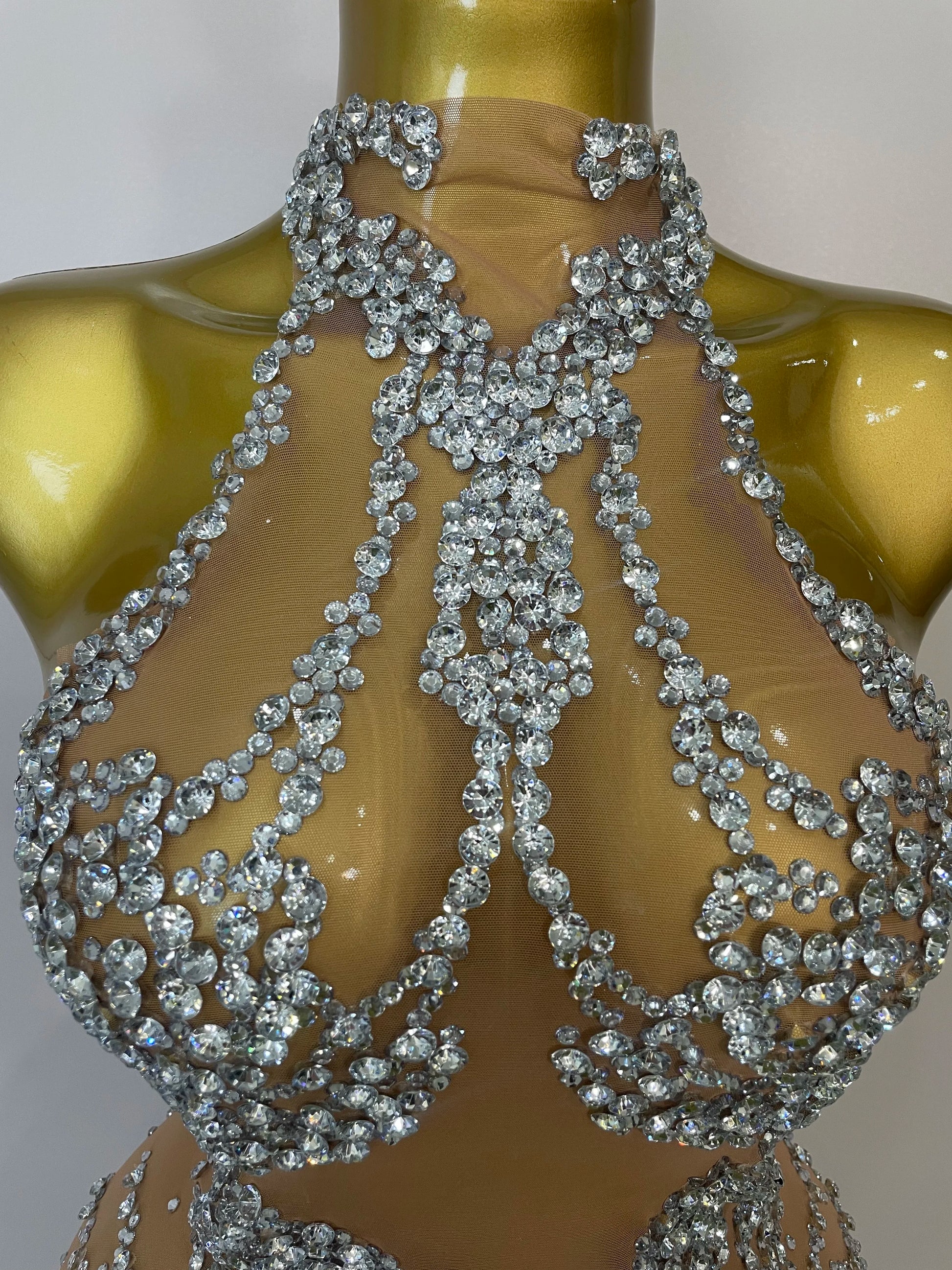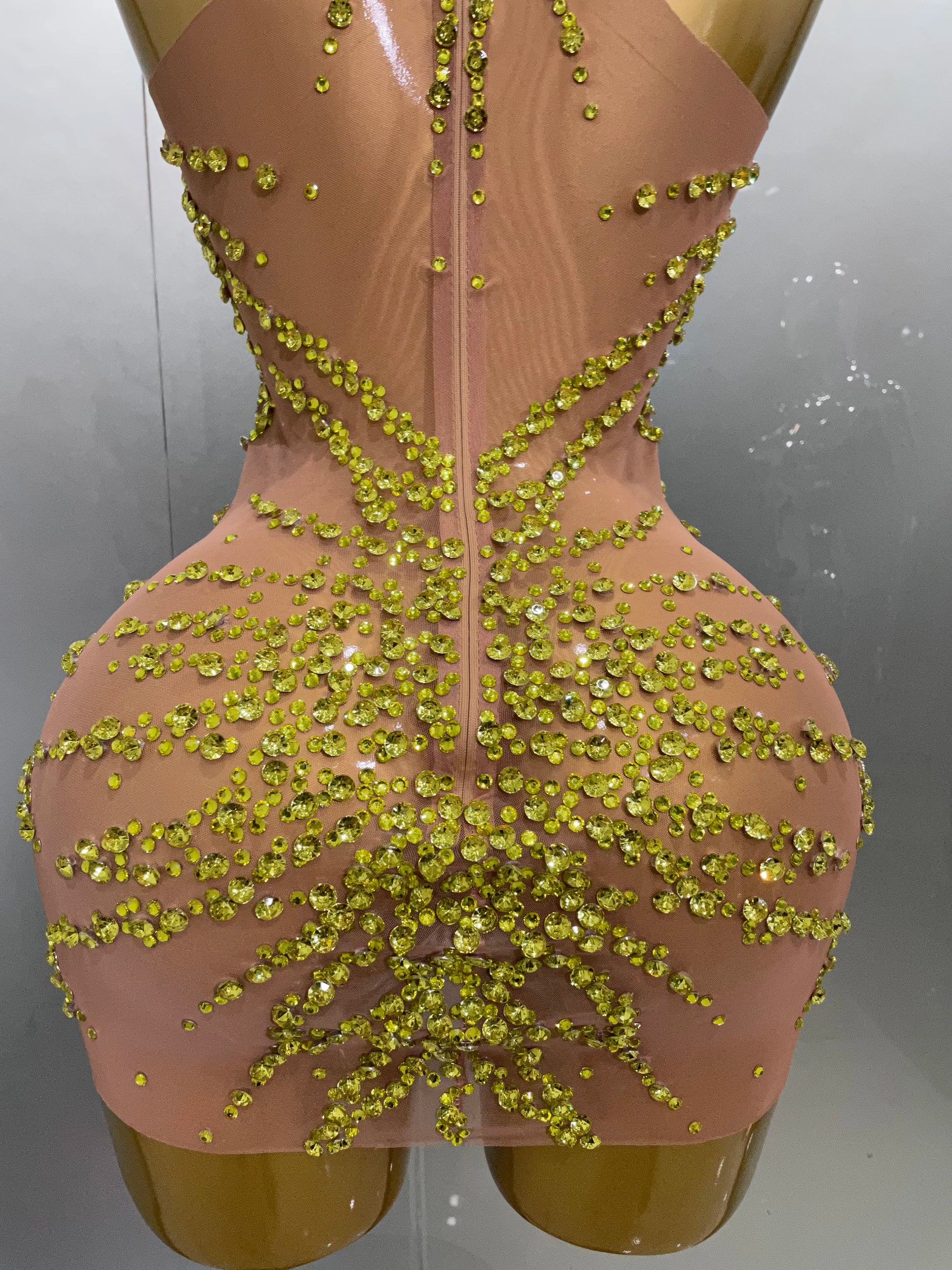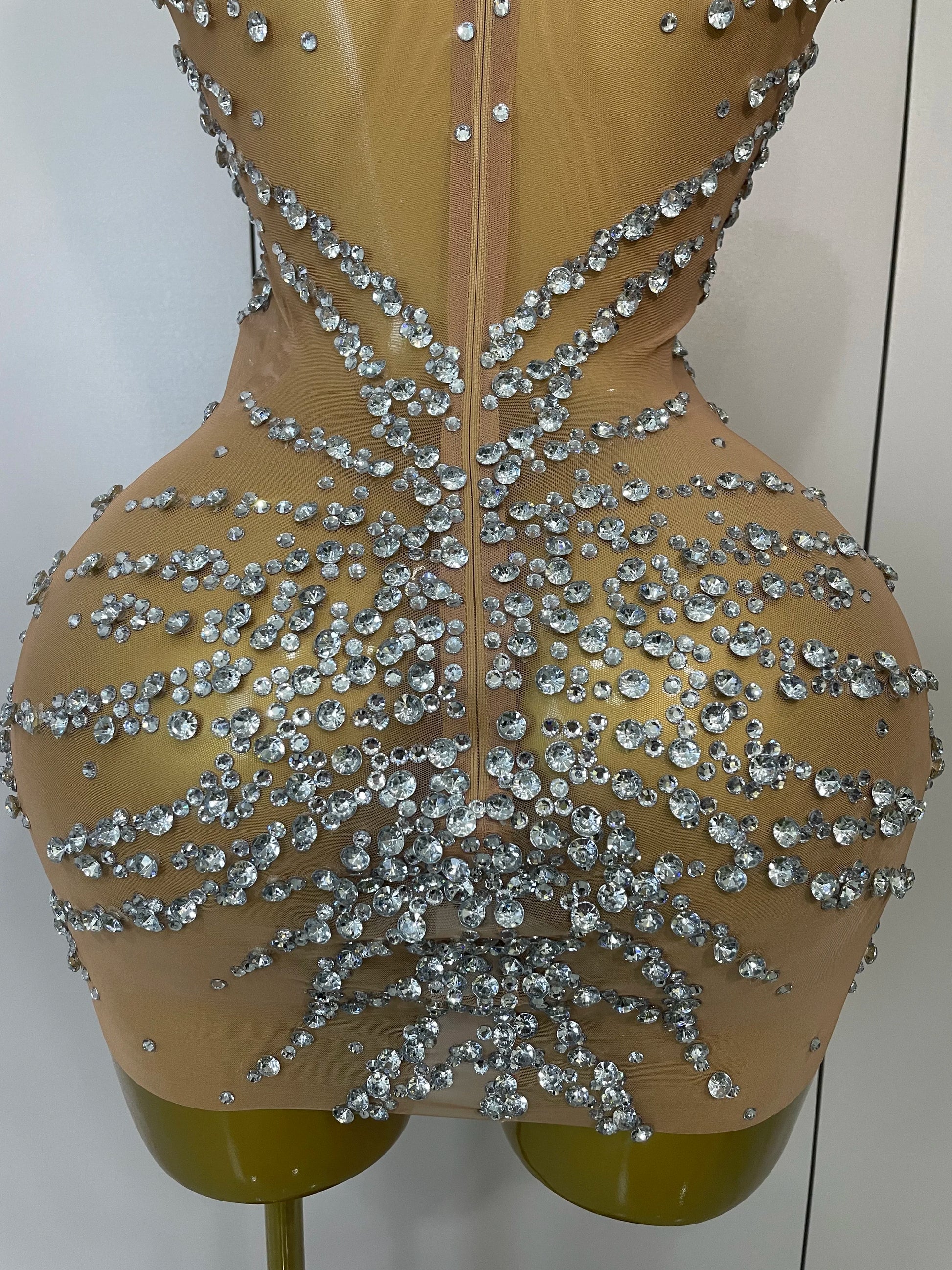STOCK Sparkly Rhinestones Sexy Mesh See Through Dress Party Evening Prom Celebrate Birthday Dress Singer Dancer Show Stage Wear