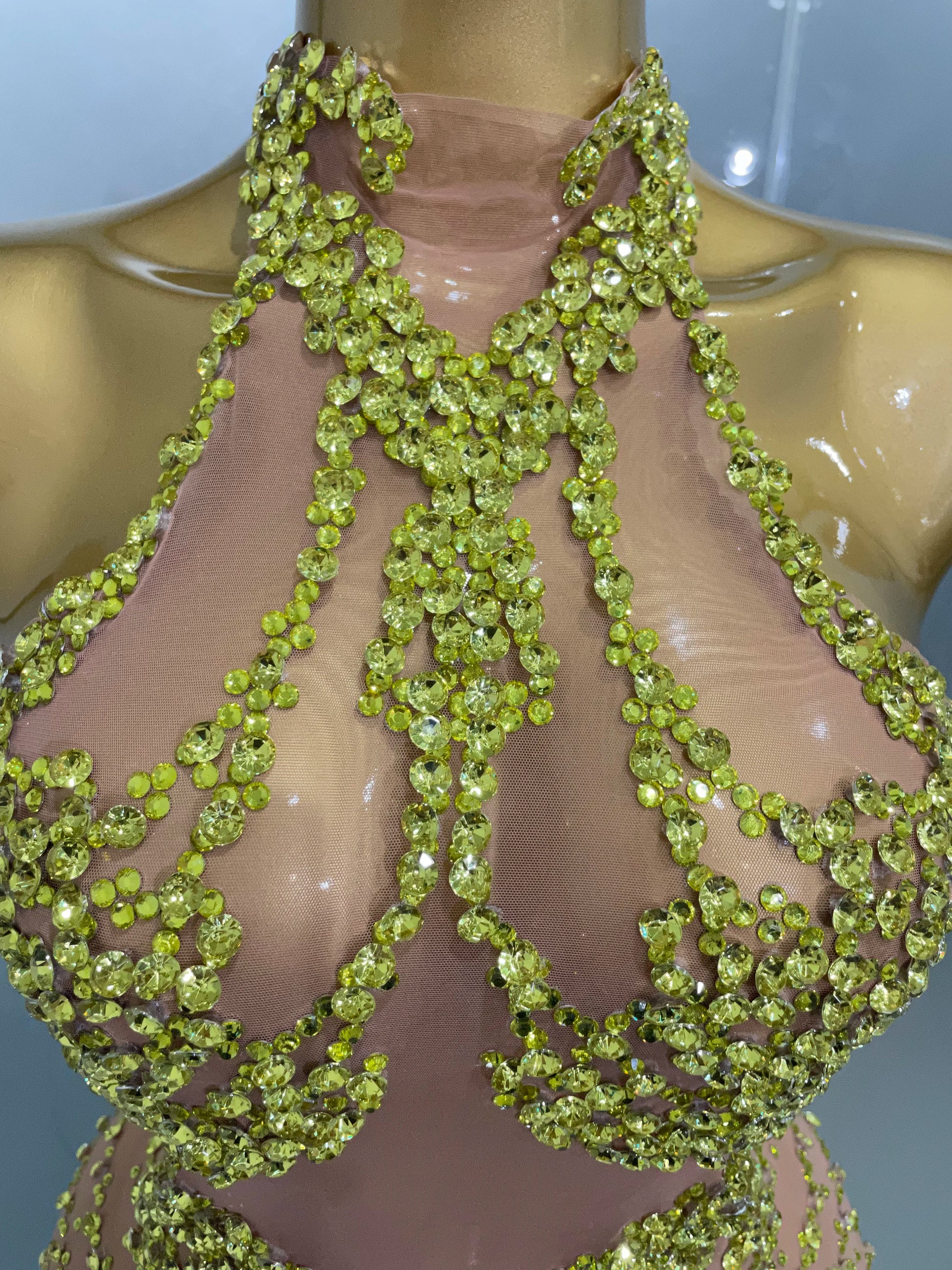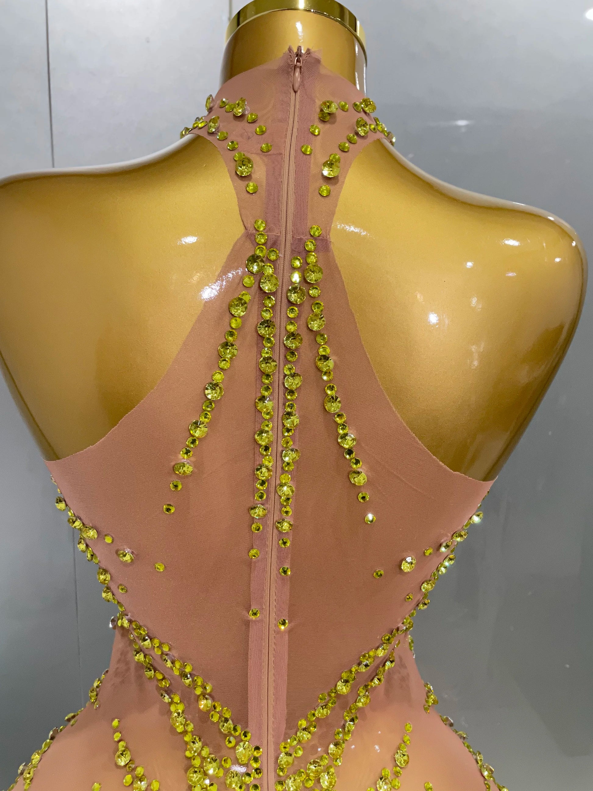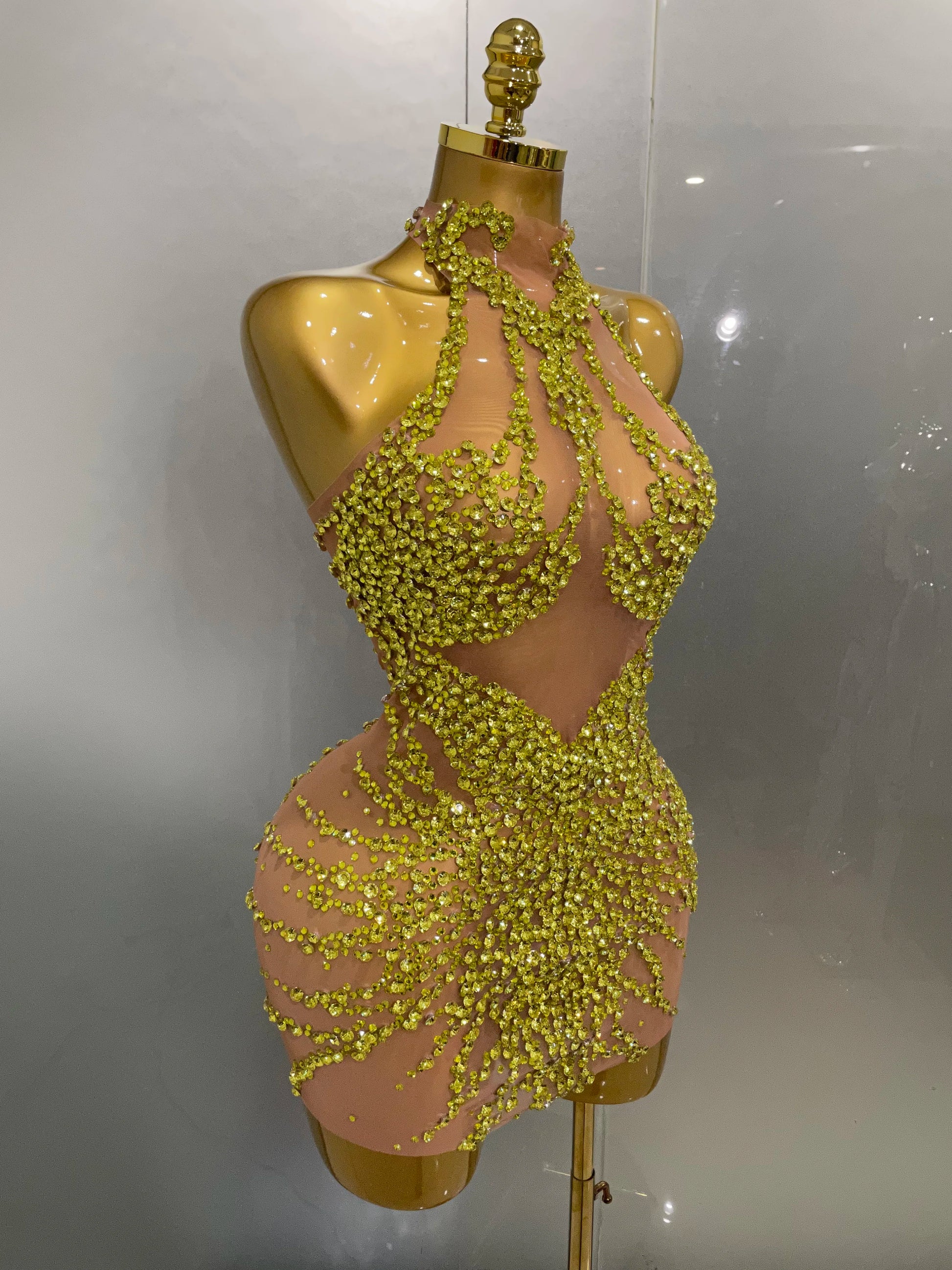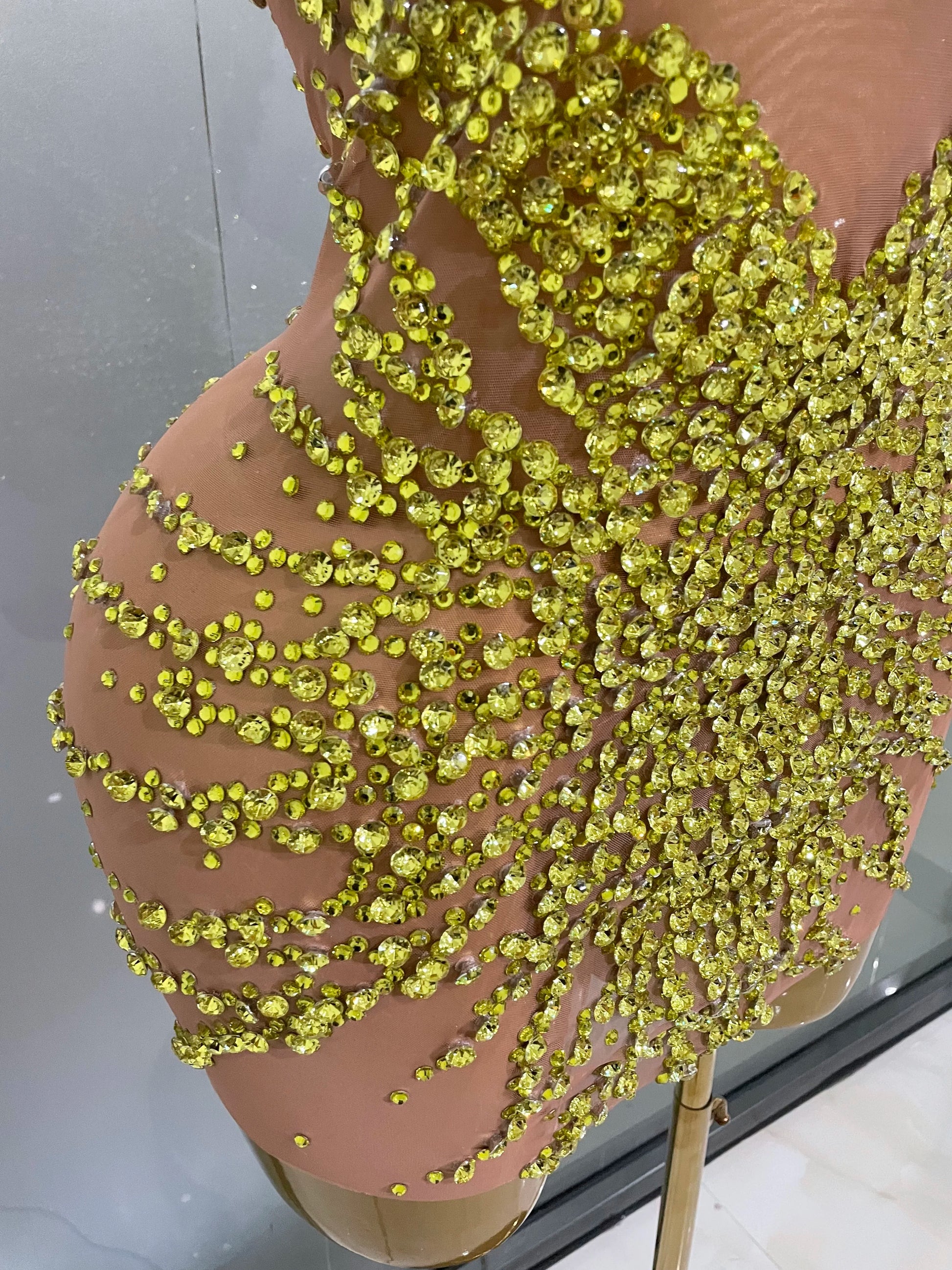 STOCK Sparkly Rhinestones Sexy Mesh See Through Dress Party Evening Prom Celebrate Birthday Dress Singer Dancer Show Stage Wear