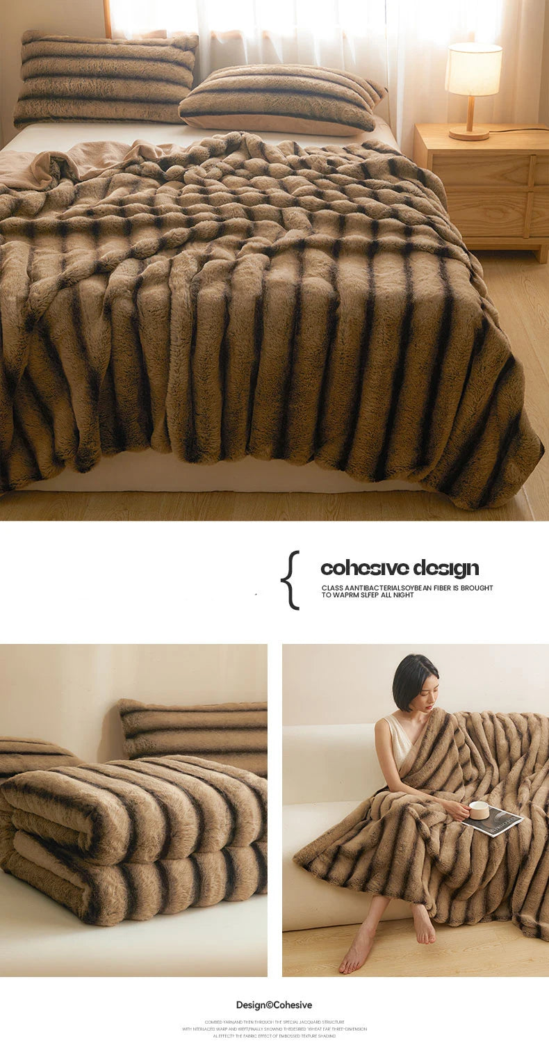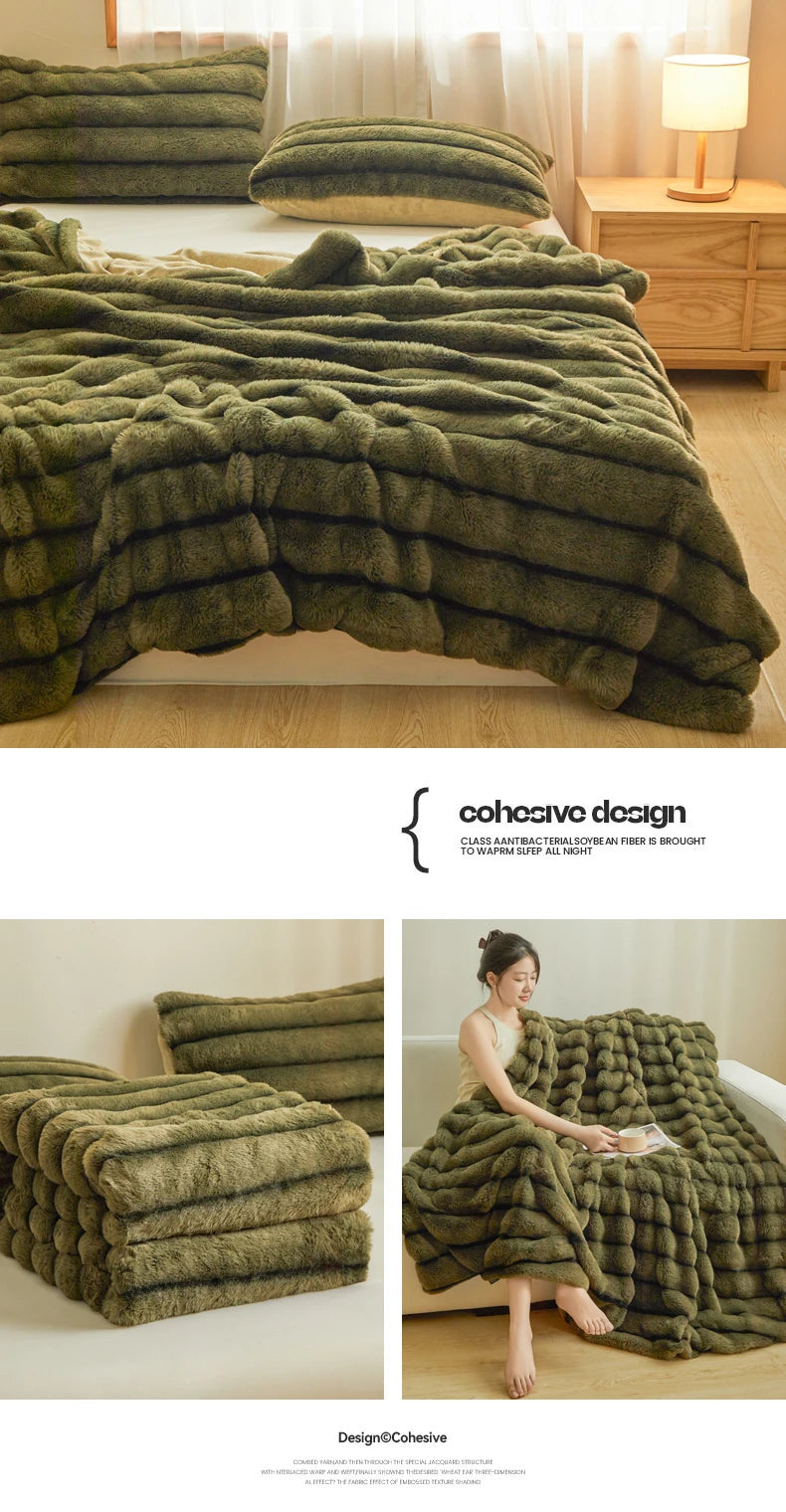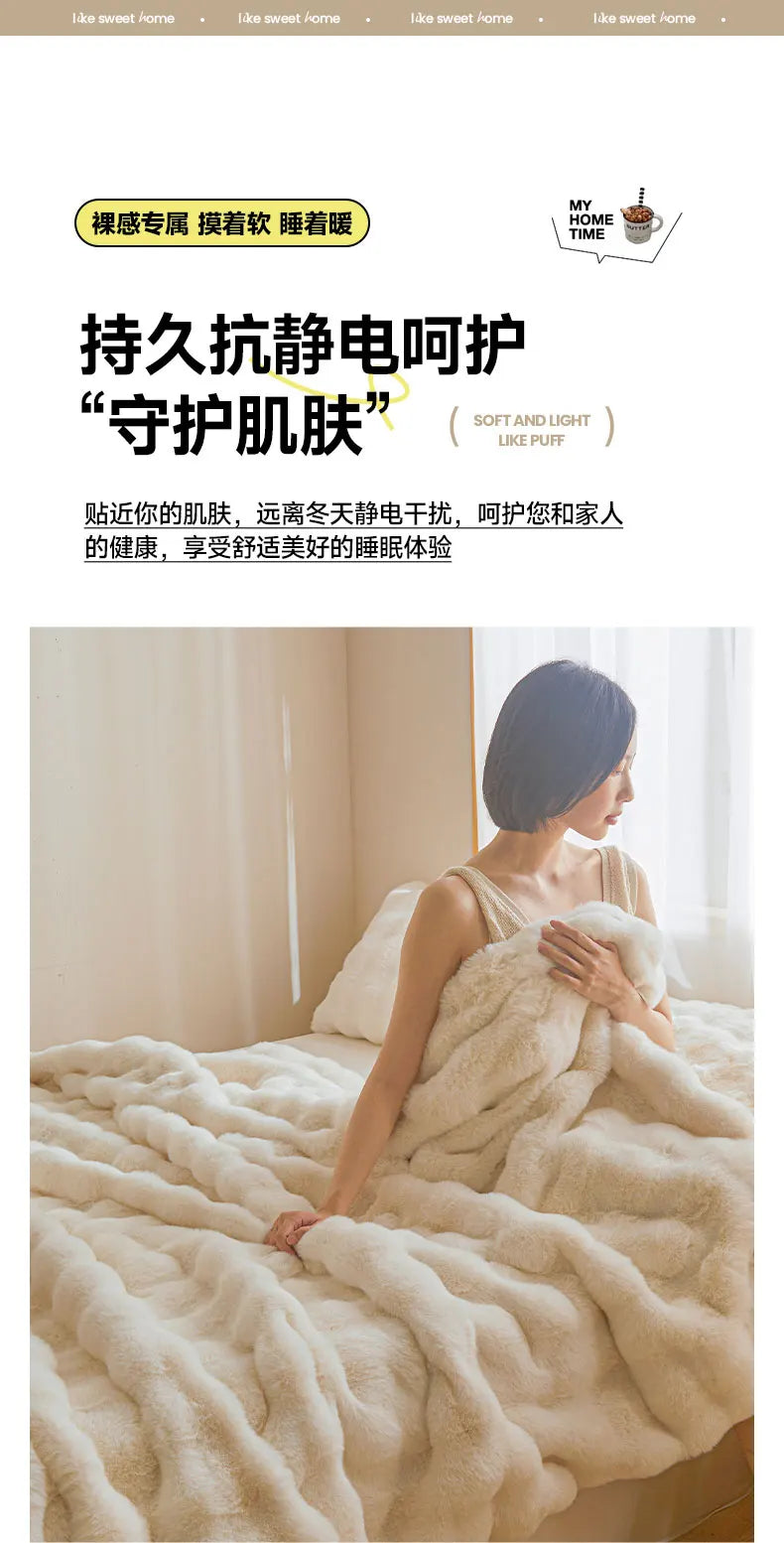 Ultra Soft Luxury Flffy Faux Rabbit Fur Blanket, Thick Winter Warm Throw Blankets, Plush Cozy Bubble Fleece Blankets Home Decor